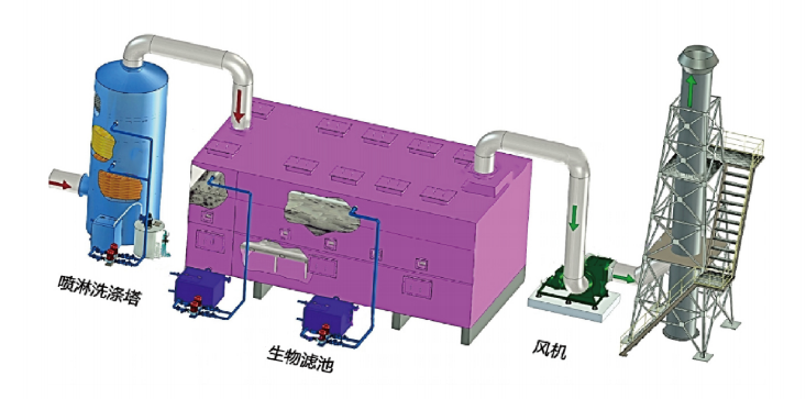 Den biologiska filtermetoden uppnår hög deodoriseringseffektivitet och är lämplig för behandling av stora volymer lågkoncentrerade avgaser.